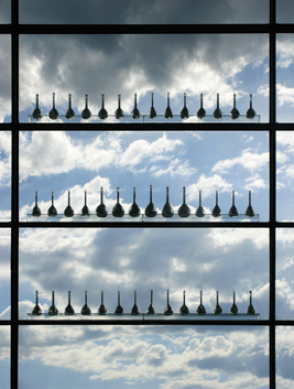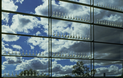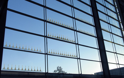In the sculpture white turkey feathers reflect the light in 214 measuring