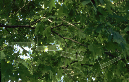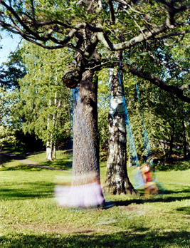 of the invisible reality. In seven trees I hang 350 acrylic seesaws for